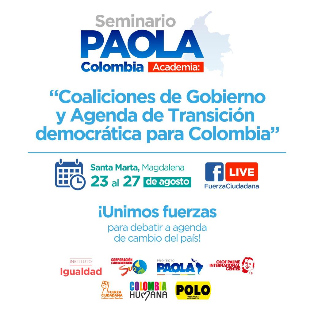 Auspiciado por el Centro Internacional Olof Palme de Suecia y el Instituto Igualdad de Chile con la participación de la Corporación Latinoamericana Sur y los partidos políticos Colombia Humana, Polo Democrático Alternativo y Fuerza Ciudadana se realizará de manera semipresencial entre el 23 y el 27 de agosto este seminario.