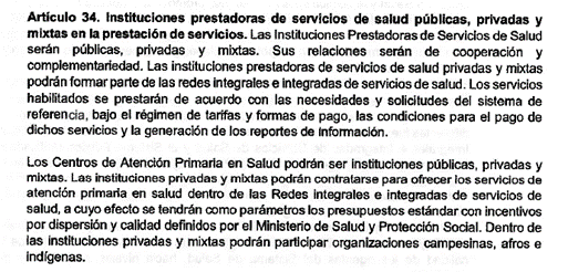 El artículo 34 habla sobre las instituciones prestdores de servicios de salud: