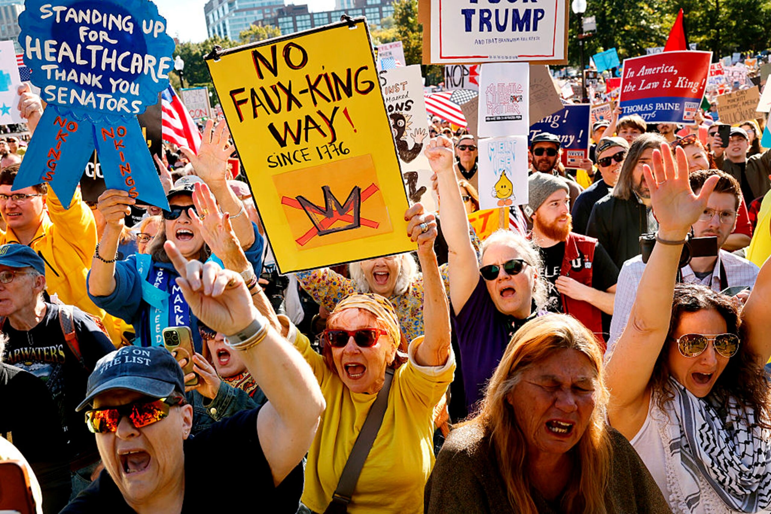 Entre las muchas buenas razones para no perder la esperanza, la primera es que la resistencia popular está creciendo, como se vio en las recientes protestas de No Kings, las más grandes en la historia de Estados Unidos. (Craig F. Walker / Boston Globe vía Getty Images)