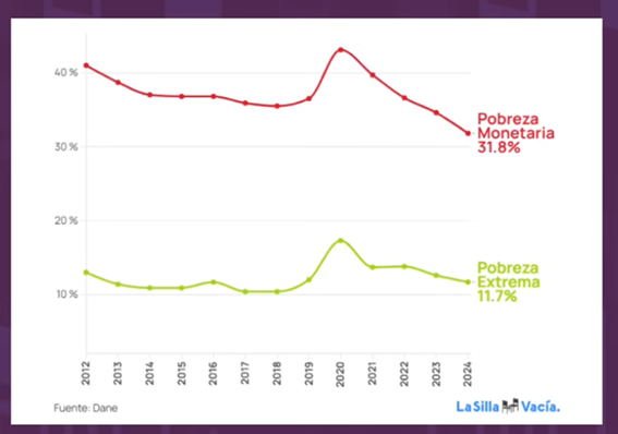 Salta a la vista que la pobreza monetaria en 2024 (Gobierno de Petro) es inferior al nivel de pobreza que Cárdenas dejó en 2018. ¿Por qué Pacheco no le contra preguntó a Cárdenas? ¿Por qué no le señaló la posverdad que estaba diciendo o la declaración falsa dirigida a manipular y engañar a la sociedad?