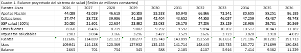 El documento radicado el 20 de agosto, incluye dos fuentes adicionales de recursos, en atención a propuestas de la ponencia para tercer debate, ellos son: i) el recaudo de impuestos saludables, incluido en la reforma tributaria, Ley 2277 del 2022, sobre bebidas azucaradas, otros productos con azúcar y alimentos ultra procesados, para dejarlo con destinación especifica, y ii) el IVA social del 0.5%, que ya tiene destinación especifica al sector salud, según el articulo 184 de la Ley 1819 de 2016. El primer rubro esta incluido en la tabla 10 del documento, el mismo que se anexa como Balance proyectado del sistema de salud (cuadro 1), y que deja superávit en las cuentas.