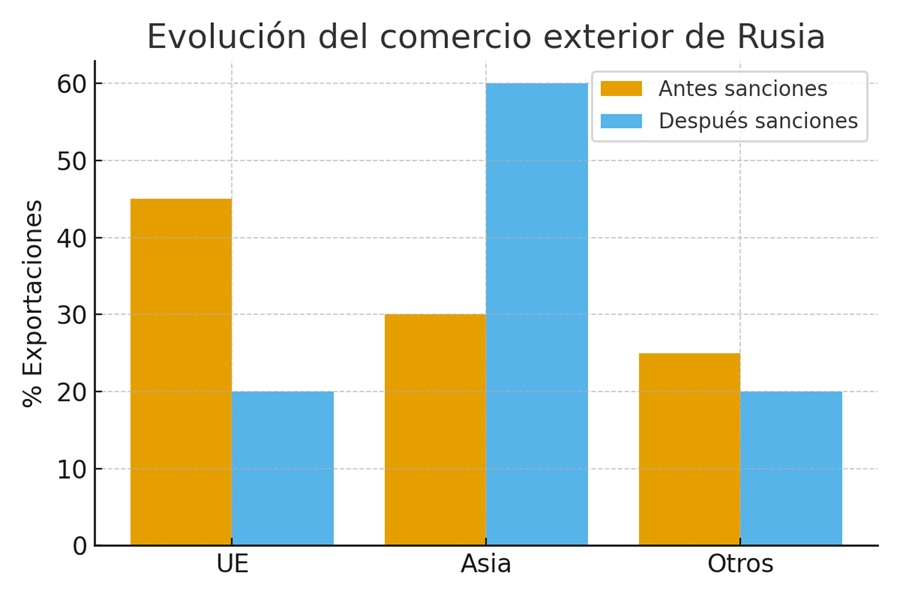 Por otra parte, las sanciones, en lugar de aislar a Rusia, la han impulsado a fortalecer sus alianzas con el Sur Global. Su creciente papel en el BRICS y en la Organización de Cooperación de Shanghái (OCS) refleja una apuesta por un mundo multipolar, donde el comercio, la energía y la seguridad se reconfiguran al margen de la influencia de Washington y Bruselas. De hecho, el comercio con China e India ha compensado la pérdida del mercado europeo.