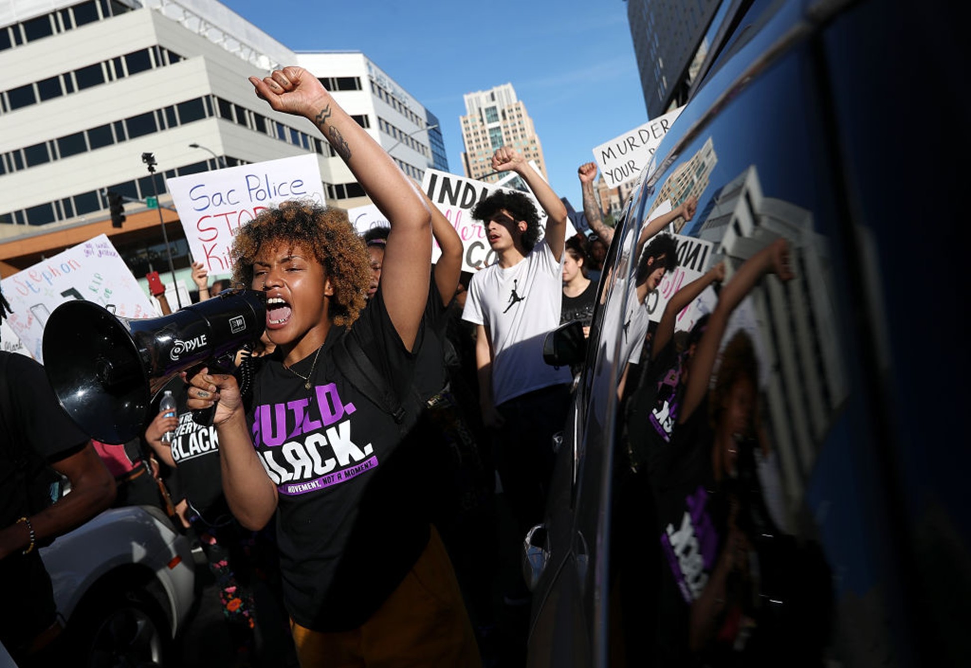 Los manifestantes de Black Lives Matter marchan por las calles durante una manifestación en Sacramento, California. (Justin Sullivan / Getty Images)