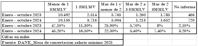 Esto se evidencia en la información presentada por el DANE durante la mesa de negociación del salario mínimo para 2025.