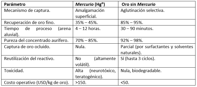 Tabla 1. Evaluación Comparativa: Mercurio vs Oro sin Mercurio[30]