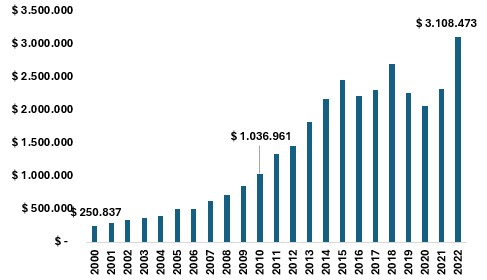 Fuente = TerriData, DNP. 2000 – 2022. Cálculos del autor.