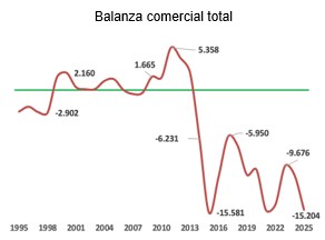 [‡] Es importante reiterar la conclusión: “La tensión entre el proteccionismo y el libre mercado continuará. Pero más allá del debate sobre los aranceles, el asunto preocupante para Colombia es el déficit estructural de la balanza comercial que en el 2025 fue de ‑US15.204 millones” (GONZALEZ Jorge., 2026. “Más Allá de la Guerra de los Aranceles”, Revista Sur, feb. 16).