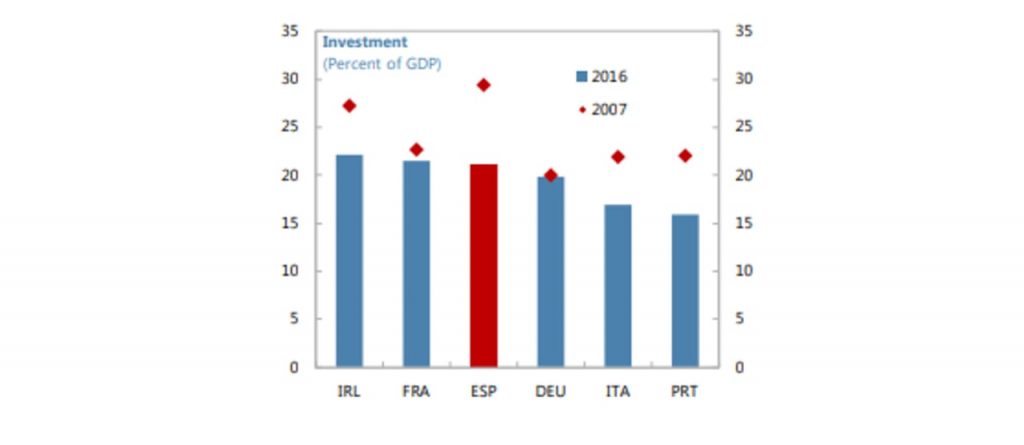 De hecho, la tasa de inversión española en relación con el PIB ha caído mucho más en comparación con las tasas anteriores a la crisis que la de sus rivales en la UE.
