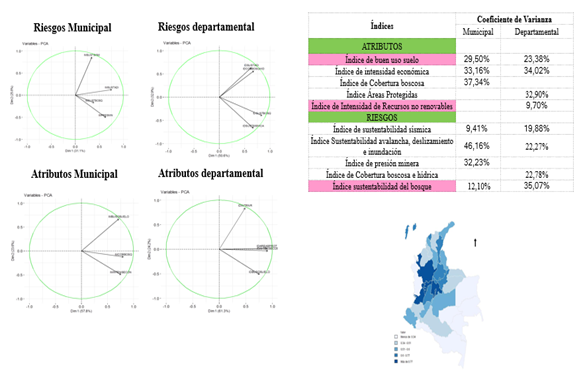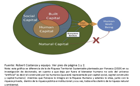 En el ejercicio de construcción del IDTS, índice de desarrollo territorial sustentable, para Colombia, que adelantó Fonseca en 2018-2019, se midió la riqueza natural y ambiental, con las siguientes variables, advirtiendo que tanto la escogencia de dichas variables como sus propios valores para cada municipio tienen muchas limitaciones tanto por la falta de información como por las limitaciones de la información existente; así, por ejemplo, se tomaron en cuenta indicadores de salud del ecosistema y de relación entre lo artificial y lo natural, dentro de cual se consideran los riesgos asociados a la relación entre asentamientos e infraestructura y las fuerzas naturales, que genera zonas de amenaza por exposición a fenómenos naturales o por el aumento del calentamiento climático y la degradación ambiental y ecosistémica: El riesgo está dado por la vulnerabilidad y la amenaza (Diamond, 2006). Los indicadores que se reunieron son los siguientes:
