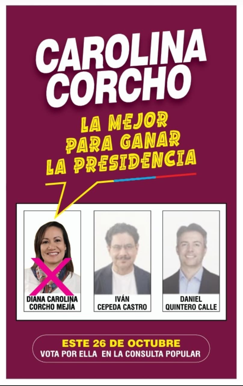 Por estas razones y por representar con convicción y sapiencia la continuidad del Cambio estableciendo los correctivos que sean necesarios y como ya lo anuncié públicamente mi voto será por Carolina Corcho este domingo 26 de octubre. ¡NI UN PASO ATRÁS!